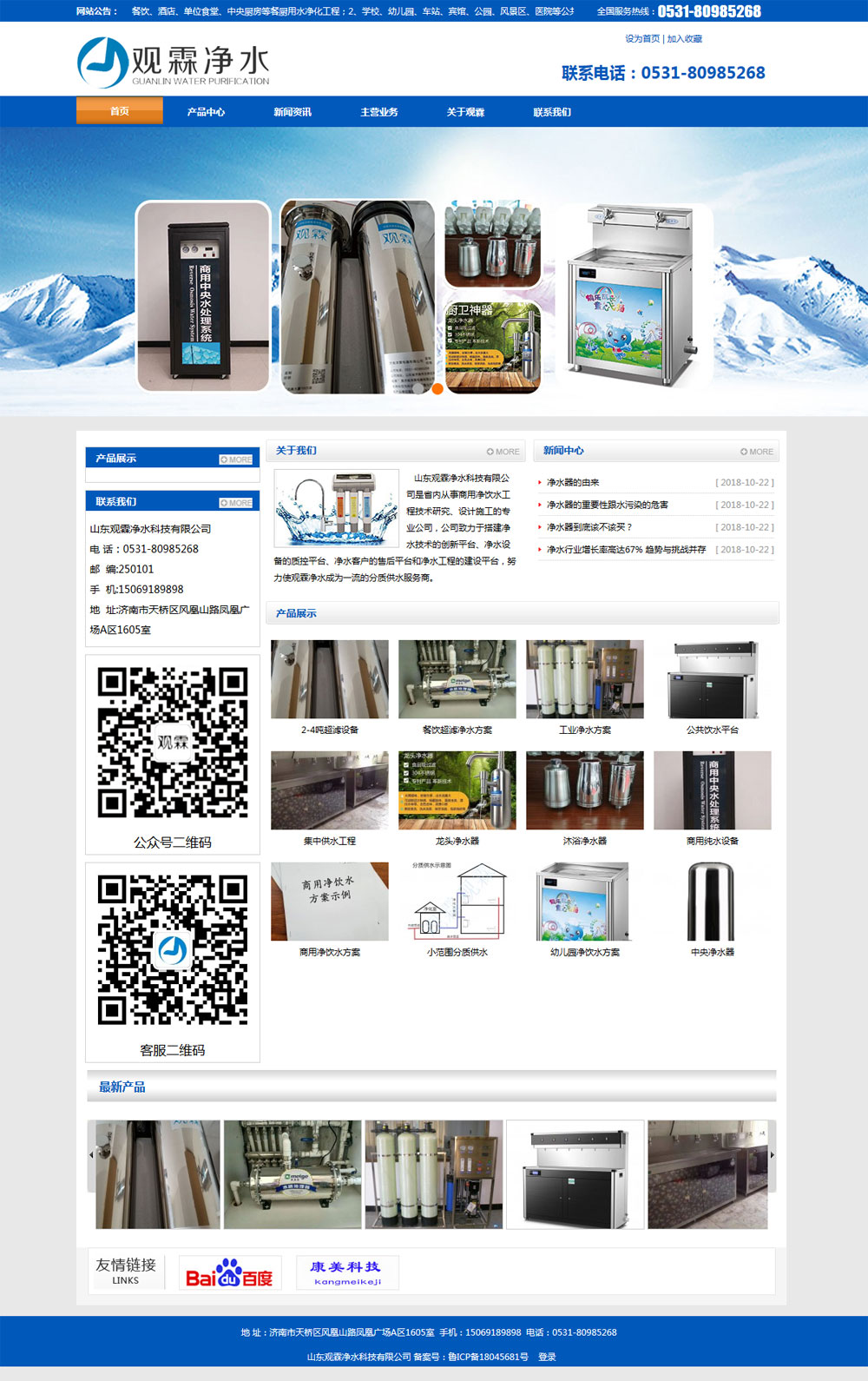 山东观霖科技公司是省内从事商用净饮水工程技术研究、设计施工的专业公司,公司致力于搭建净水技术的创新平台、净水设备的质控平台、净水客户的售后平台和净水工程的建设平台,努力使观霖净水成为一流的分质供水服务商。