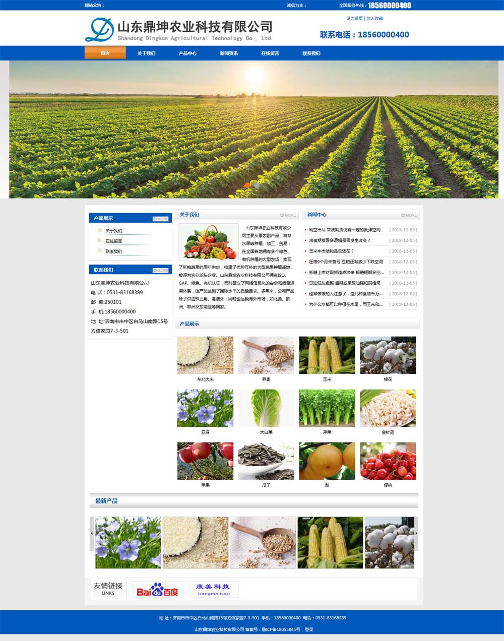 山东鼎坤农业科技有限公司主要从事农副产品、蔬菜水果等种植、加工、贸易,在全国各地拥有多个绿色、有机种植的大型农场,实现了新鲜蔬果的周年供应,构建了优势互补的大型蔬果种植基地,被评为农业龙头企业。