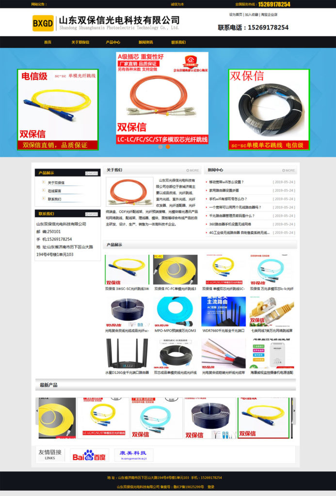山东双光保信光电科技有限公司总部位于泉城济南主要以成品皮线、光纤跳线、室内光缆、室外光缆、光纤收发器、光纤适配器、光纤终端盒、ODF光纤配线架、光纤预端接箱、光模块等光通讯产品和网络跳线、配线架、理线器、模块、面板等综合布线产品的自主研发、设计、生产、销售为一体高科技术企业。