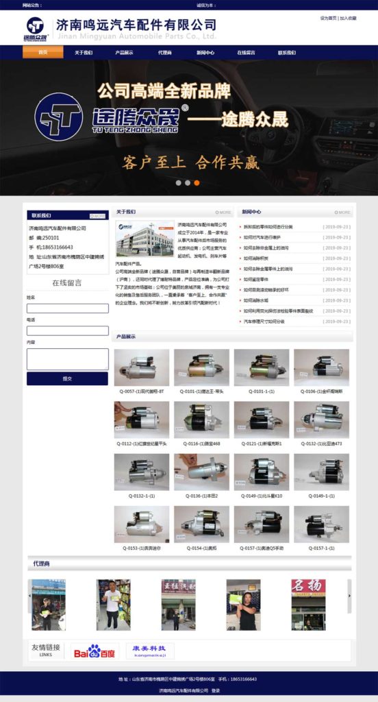 公司高端全新品牌(途腾众晟,自营品牌)与再制造半翻新品牌(沪商),还同时代理了博耐特品牌,产品定位准确,为公司打下了坚实的市场基础;公司位于美丽的泉城济南,拥有一支专业化的销售及售后服务团队,一直秉承着“客户至上、合作共赢”的企业理念。我们将不断创新,努力改革引领汽配新时代!