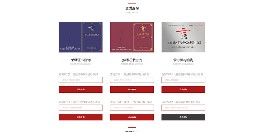 本网站可以提供考级证书在线查询、教师证书在线查询、承办机构在线查询。