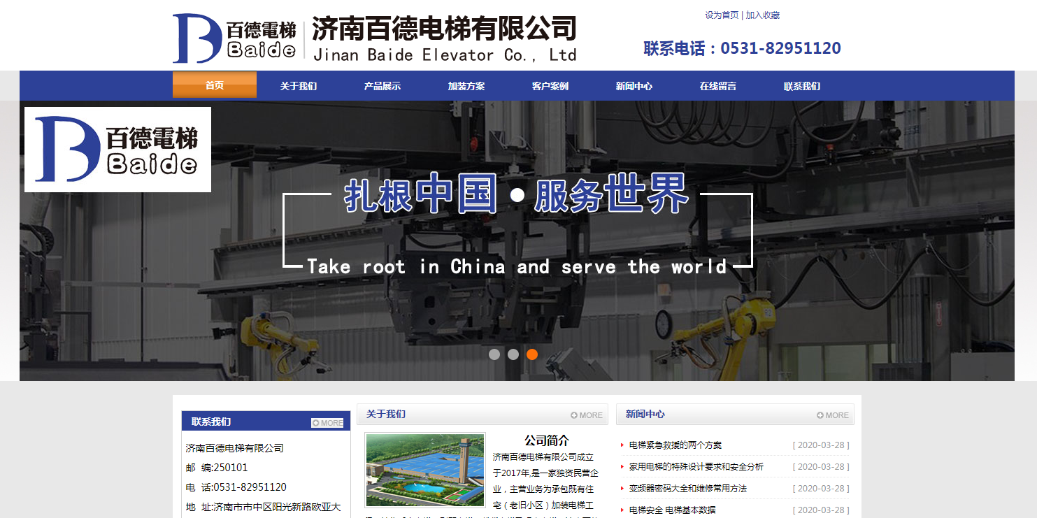 祝贺由济南康美信息技术有限公司设计制作的济南百德电梯有限公司官网已连续安全稳定运行四年